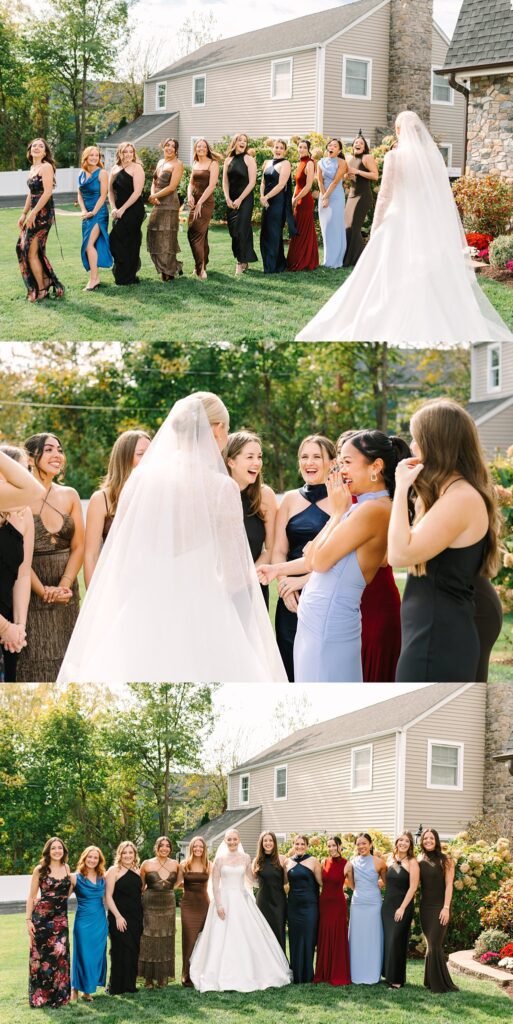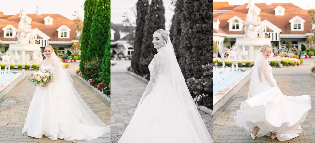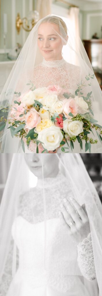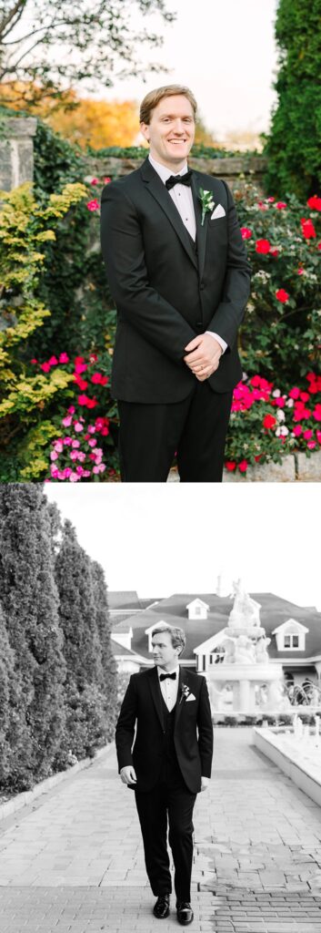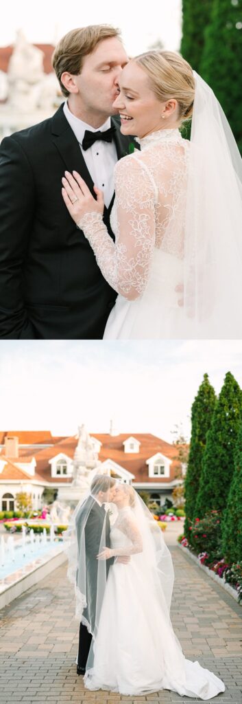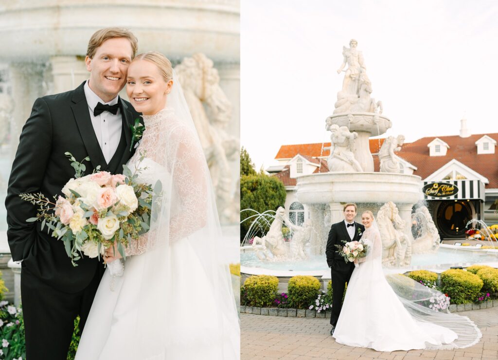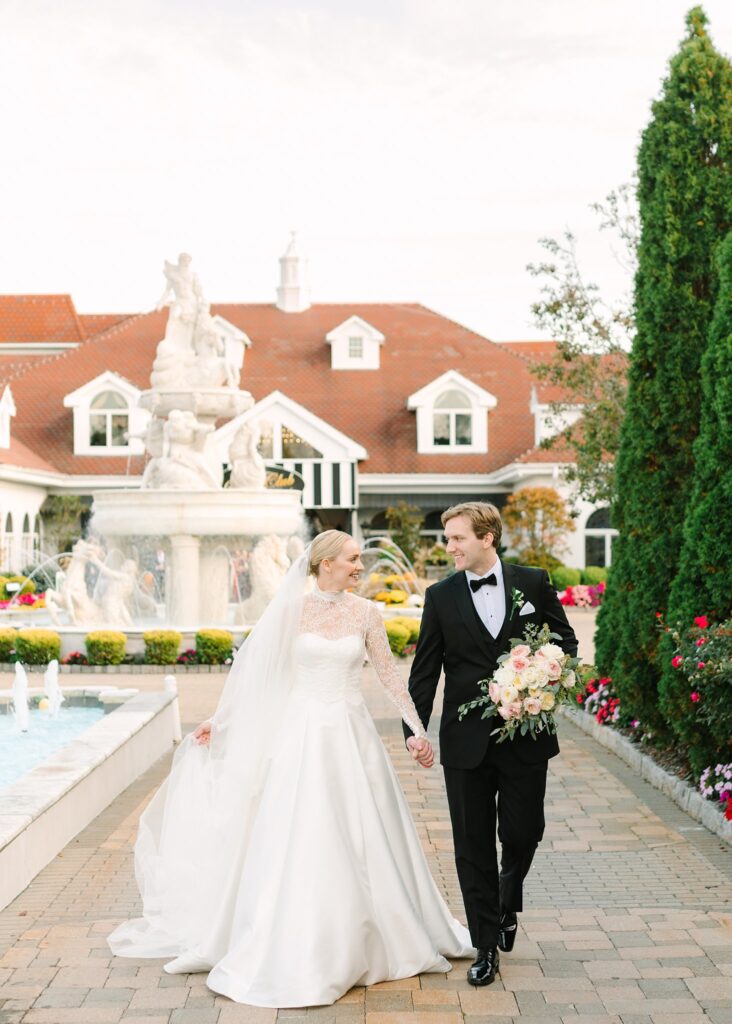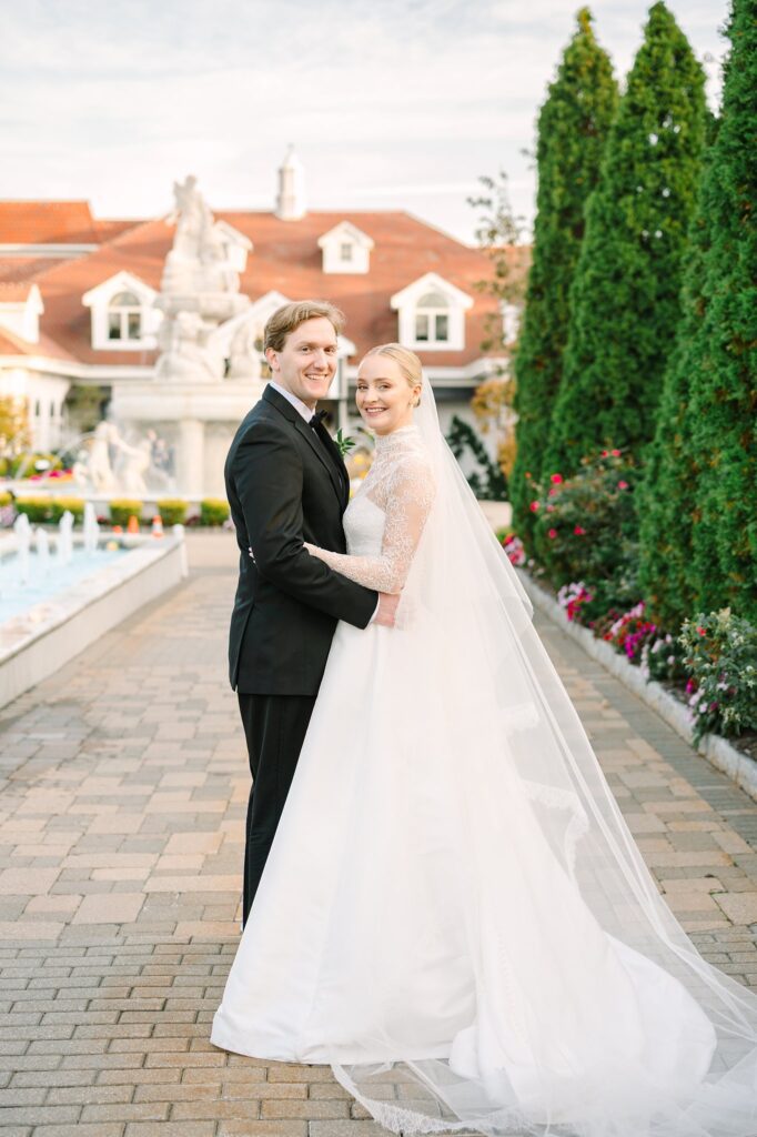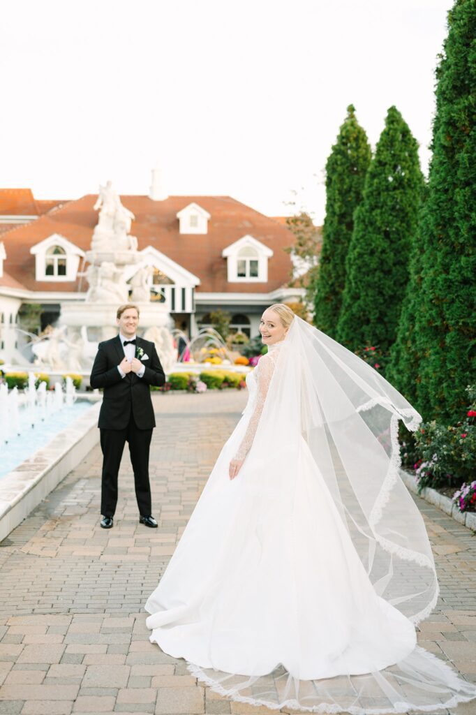 The celebration continued at The Surf Club on the Sound, where we captured timeless and candid portraits. The venue offered a stunning variety of backdrops, from the floral-lined cobblestone driveway and elegant fountains at the front of the property to the grand marble staircase inside.