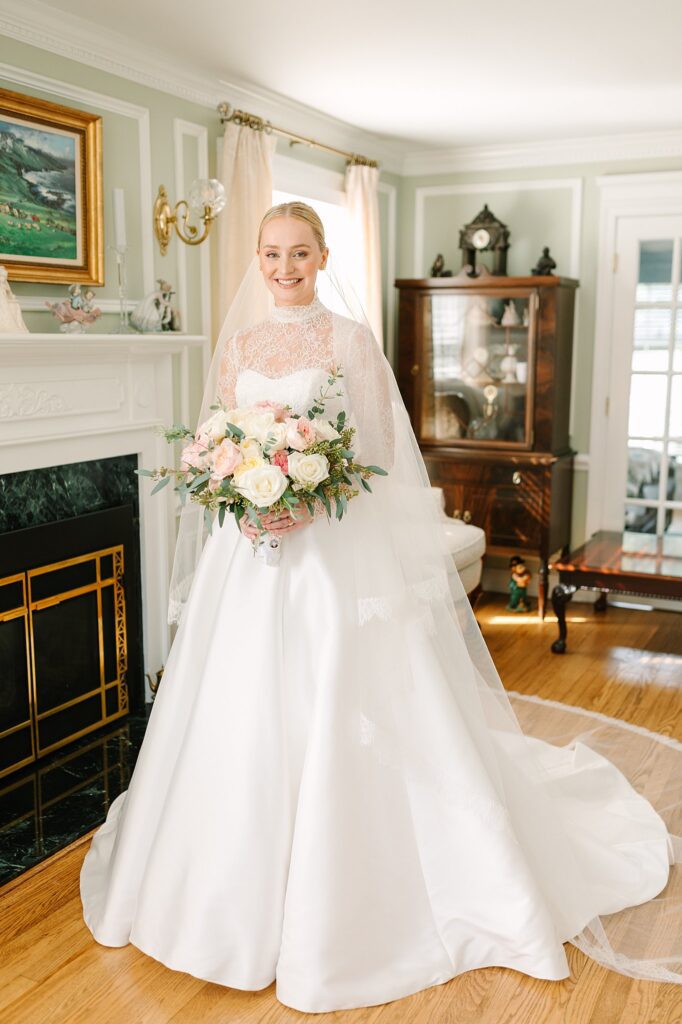 Erin and Gordon’s wedding day began at Erin’s family home in Westchester, where Gordon had previously proposed to Erin. He surprised her with an intimate and deeply heartfelt proposal, illuminated by candlelight. What Erin didn’t know was that an even bigger surprise awaited her inside. Their family and friends were waiting inside, ready to celebrate their engagement and share in the joy of the moment!